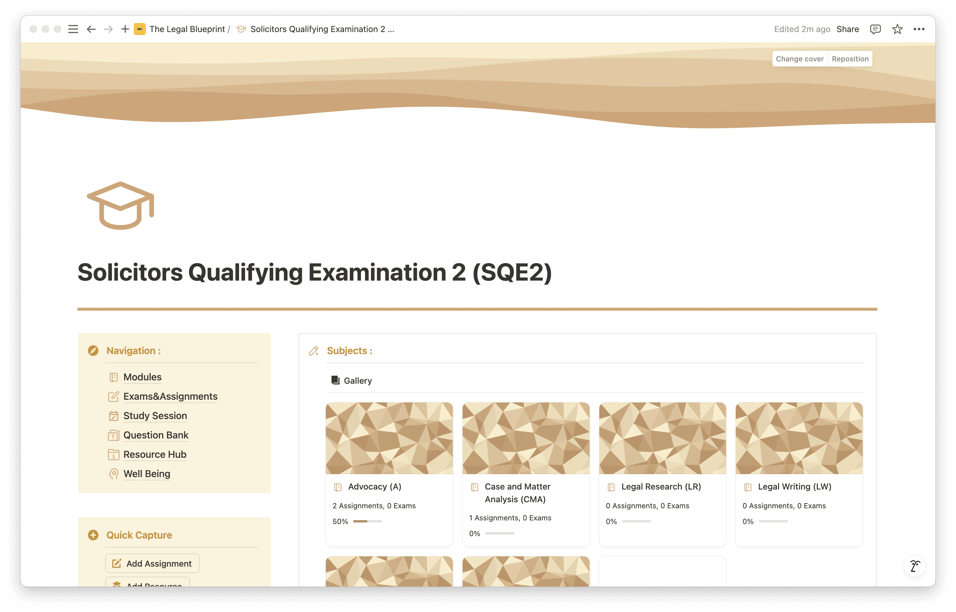 The SQE2 Notion Template is a structured digital workspace built in Notion — a free platform available on desktop and mobile — designed around the actual structure of the SQE2 assessment.